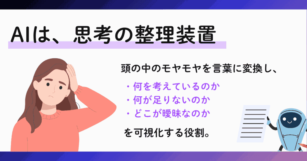 AIは、頭の中のごちゃごちゃした思考を言葉に分解する作業を助けてくれます。