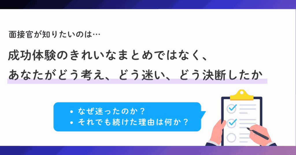 「なぜそう思ったのか」「どこで迷ったのか」といった背景がないと、本人の言葉として受け取られにくくなります。